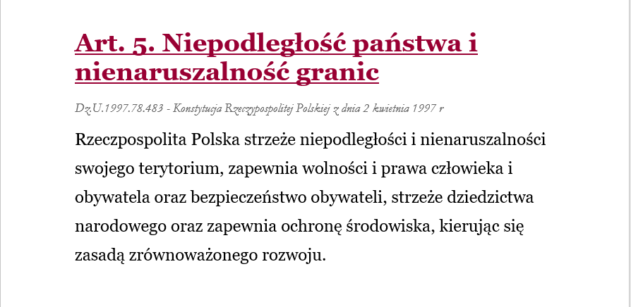 Kategorie Art. 5. Niepodległość państwa i nienaruszalność granic Tagi nienaruszalność granic, niepodległość państwa